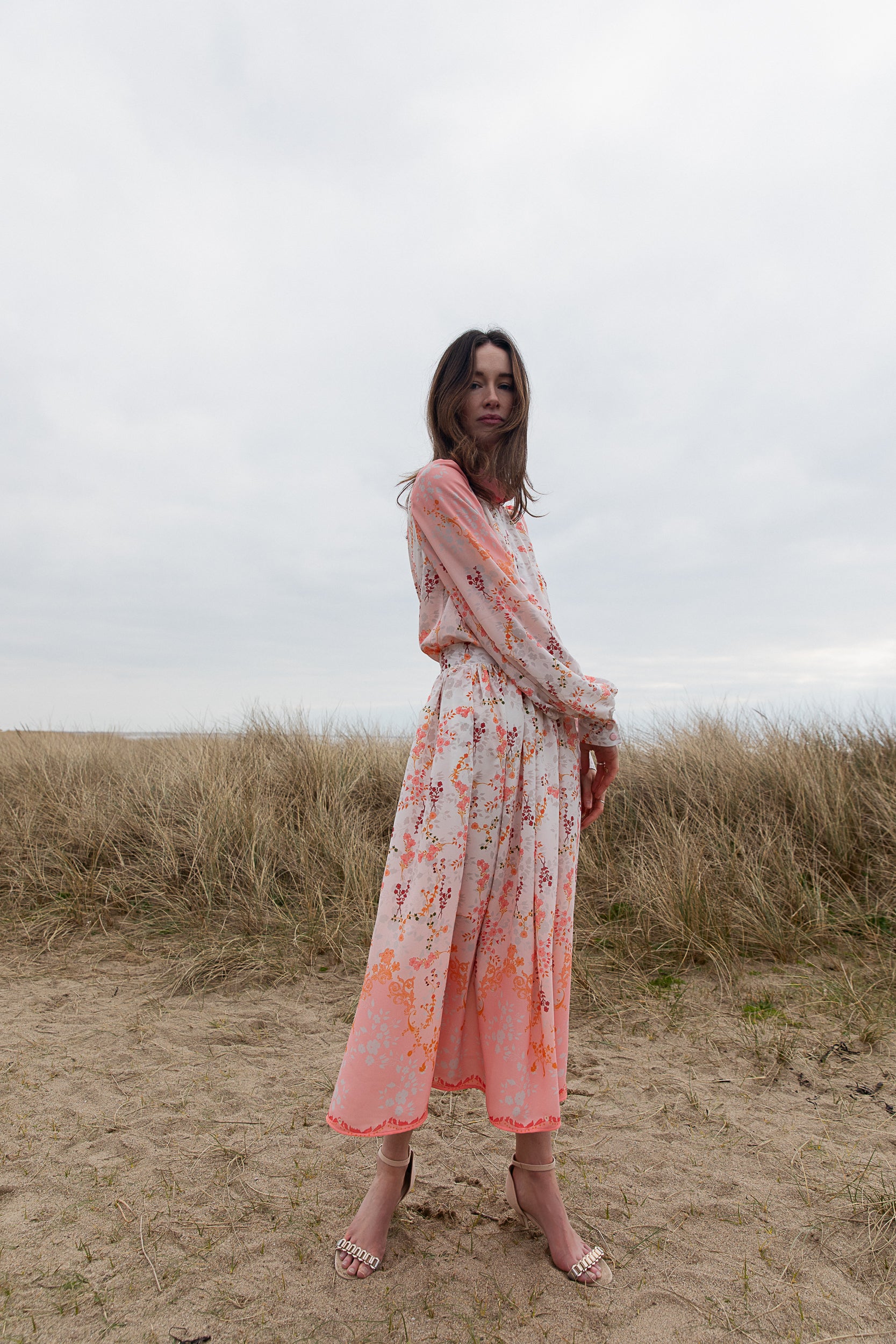 Stand out features include a fixed waistband, gathered skirt and midi length.