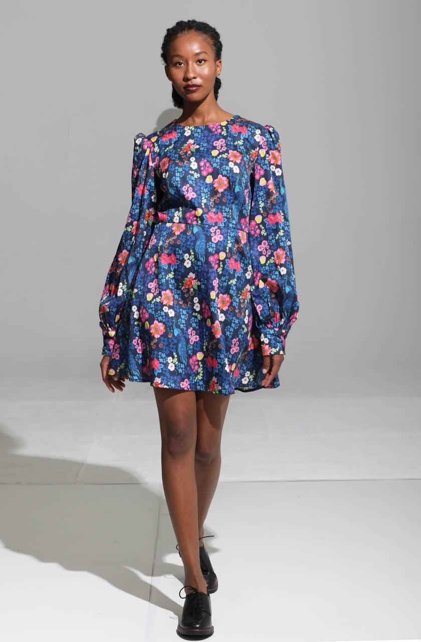 The Peacock Mini dress features our striking “peacock” print and comes with a removable under collar, it can be worn with our without completely transforming the look. This fun and flirty dress has a fixed waist, long sleeves and is made from 100% cotton.