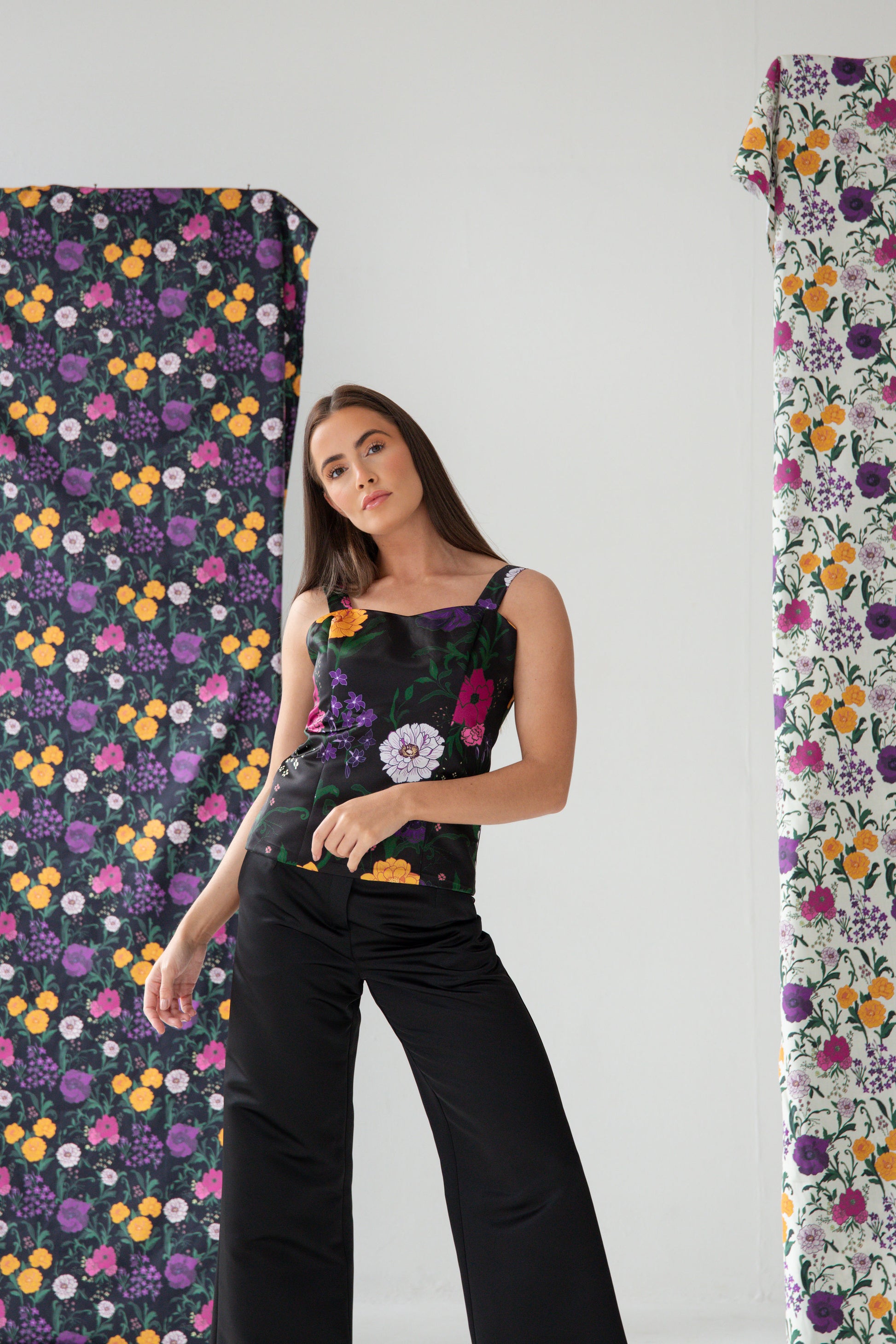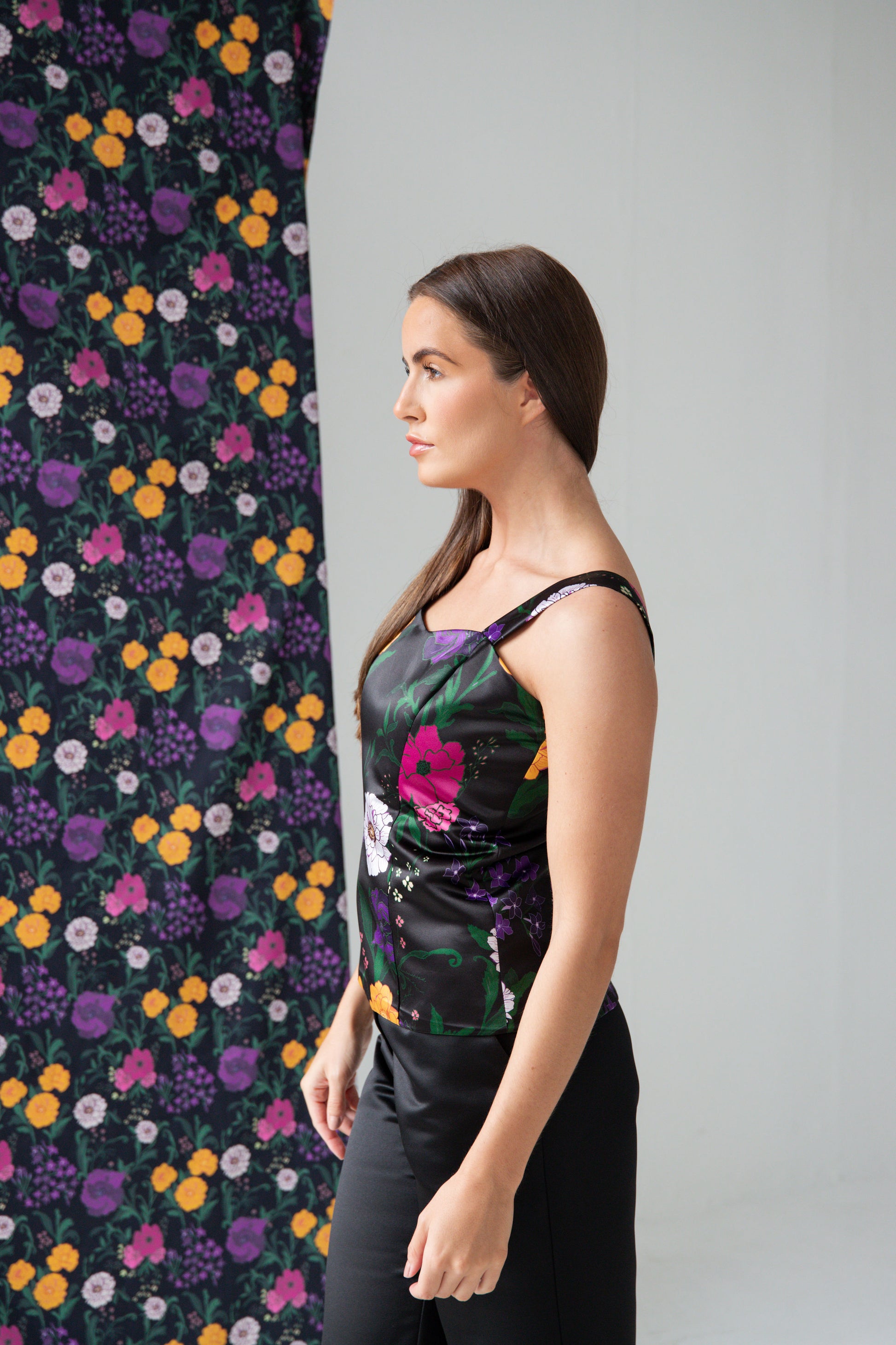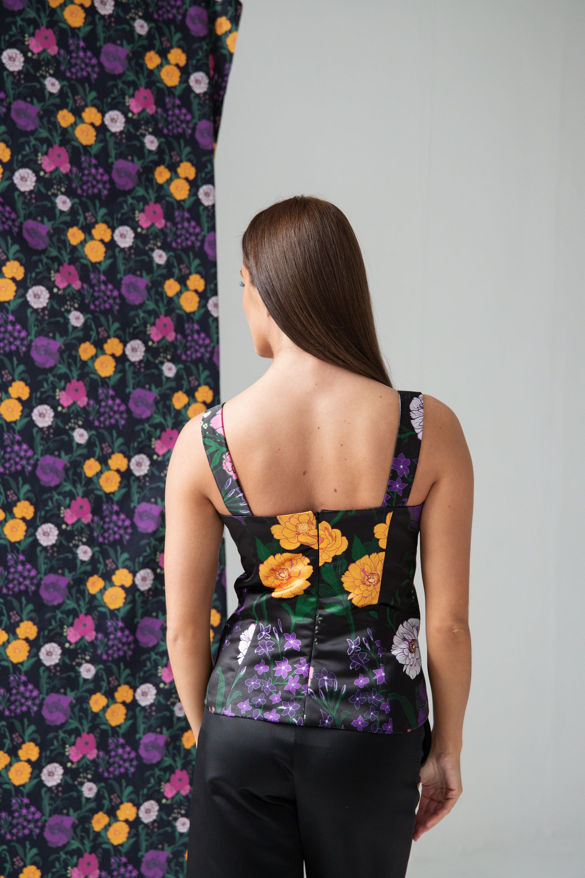 The Secret Garden Corset features a hand-drawn print, wide straps and a sweet heart neckline.